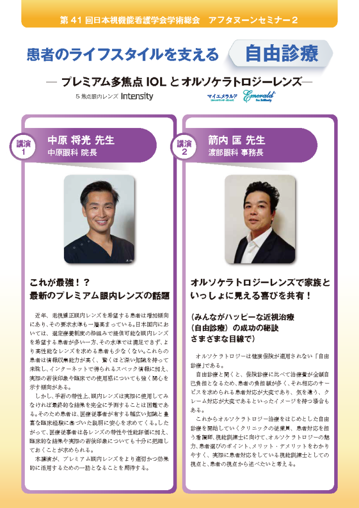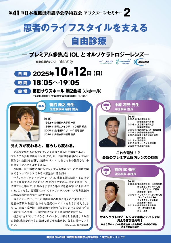 第41回日本視機能看護学会学術総会アフタヌーンセミナー開催のお知らせ